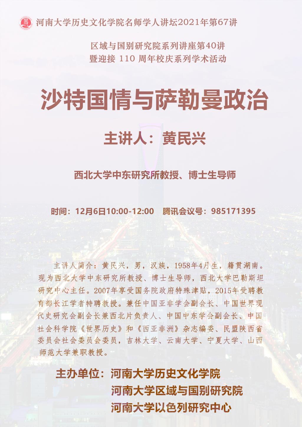 【讲座通知】黄民兴:沙特国情与萨勒曼政治