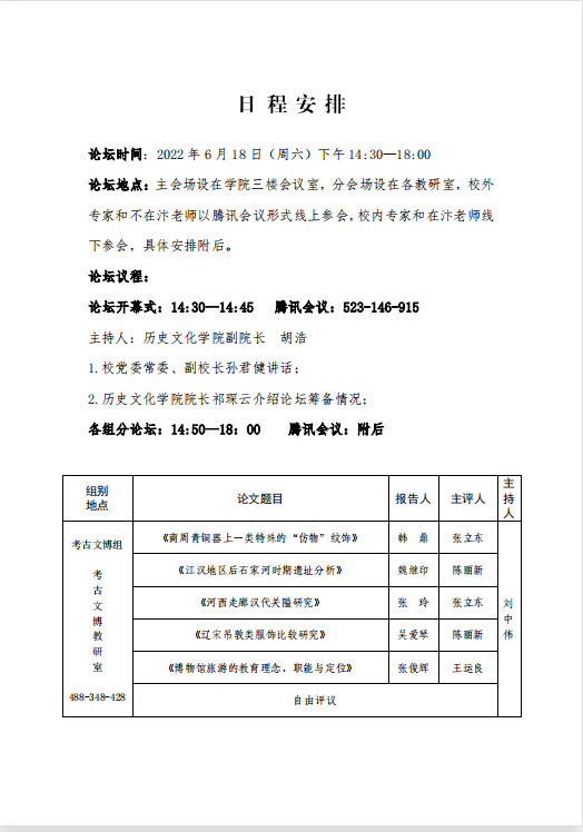 河南大学历史文化学院“2022年博雅学术论坛”会议手册