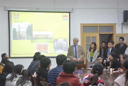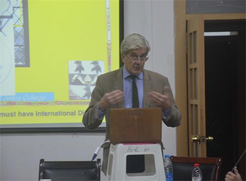 柯瑞思教授以丰富的图片和风趣的语言介绍了剑桥大学的国际化的发展历程。他认为,剑桥大学与外界的联系由来已久。早期的剑桥大学教育与传统的西方教育基本相似,教育都在基督教的控制之下,知识则来源于希腊和罗马,均采用古典的教学方法,强调拉丁语的学习。他还以大量剑桥大学的经典建筑展示其非常高的国际化程度。