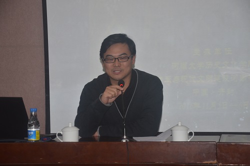 历史文化学院副院长张礼刚教授致欢迎辞,他代表历史文化学院对各位专家学者的到来表示欢迎,感谢各位专家学者对河南大学及历史文化学院的关心与支持。他向各位专家学者简单介绍了河南大学及历史文化学院的基本概况及发展现状,他表示,本次学术研讨会将进一步促进新诸子学与中国古代思想史的研究,使本学术领域迈入新的研究高度并预祝此次研讨会圆满成功,取得丰硕的成果。