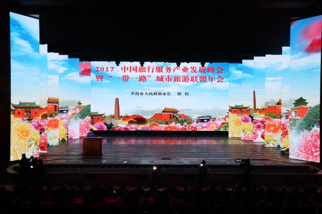 金秋十月,满城菊香。在“中国菊花名城”开封第35届菊花文化节刚刚启幕之际,10月21日上午,作为本届菊花文化节21项活动的重头戏之一的2017中国旅行服务产业发展峰会暨“一带一路”城市旅游联盟年会在开封成功举行。本届会议由中国旅游研究院、河南省旅游局、开封市人民政府、河南大学主办,中国旅游研究院产业研究所、开封市旅游委员会、河南大学文化旅游研究院、“一带一路”城市旅游联盟承办,中国晚报工作者协会支持协办,来自意大利地方政府、“一带一路”城市旅游联盟成员单位、主办承办协办方,蚂蜂窝、穷游网等旅行服务提供商、开封本地旅游行业等各方代表,中央及地方各类媒体记者、网络达人等400余人齐聚开封,围绕旅行服务创新助推“一带一路”文化旅游交流这一中心主题,共同探讨新形势下中国旅行发展新趋势,谋求“一带一路”城市旅游联盟大合作。中国旅游研究院院长戴斌、河南省旅游局局长寇武江、开封市市长侯红、河南大学副校长张宝明等有关领导出席开幕式并发表热情洋溢的致辞。会议由开封市副市长孙晓红主持。