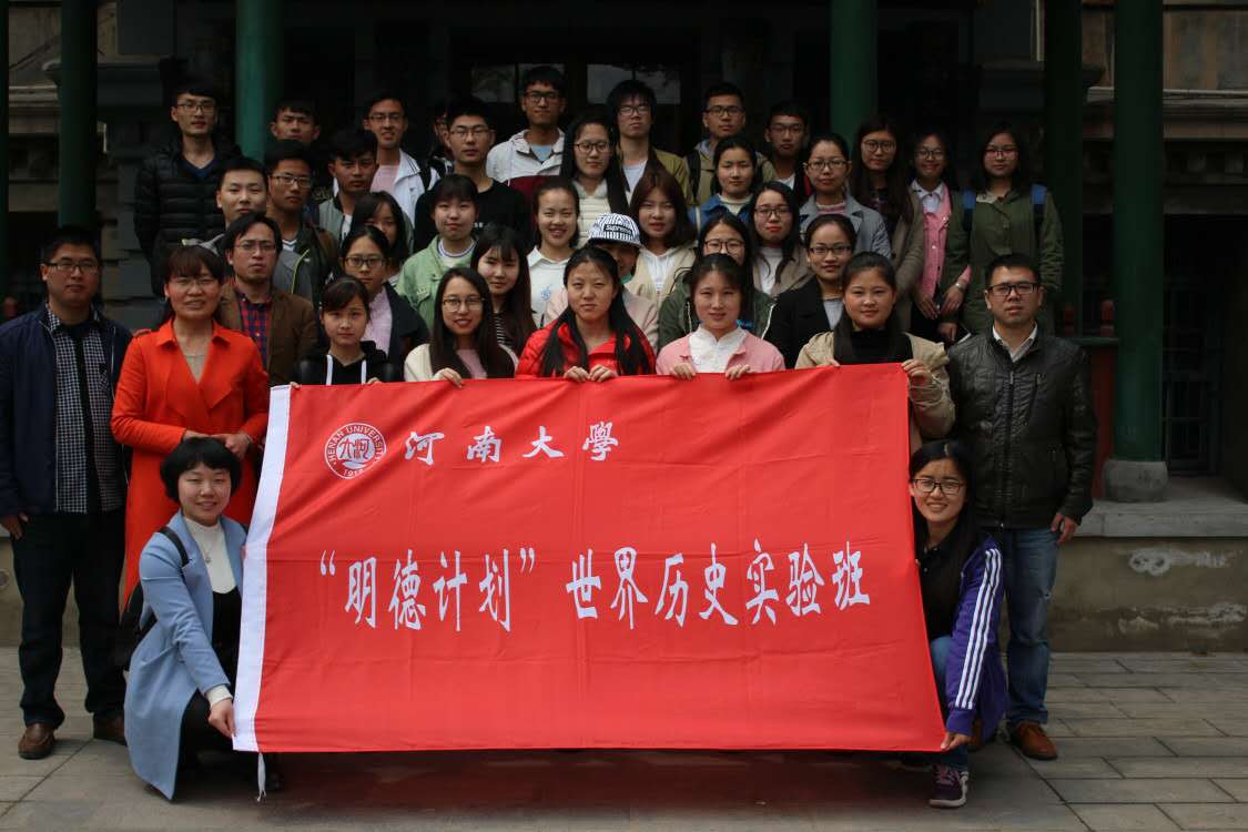 为了配合实验班出访,并宣传介绍我校世界历史实验班,世界史的教师们集体设计了一面“河南大学‘明德计划’世界历史实验班”的班旗,用于对外交流时展示实验班的形象,并专门举行了实验班班旗授予仪式。