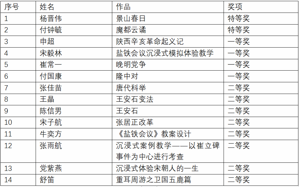首届“历史沉浸式教学案例大赛”获奖名单