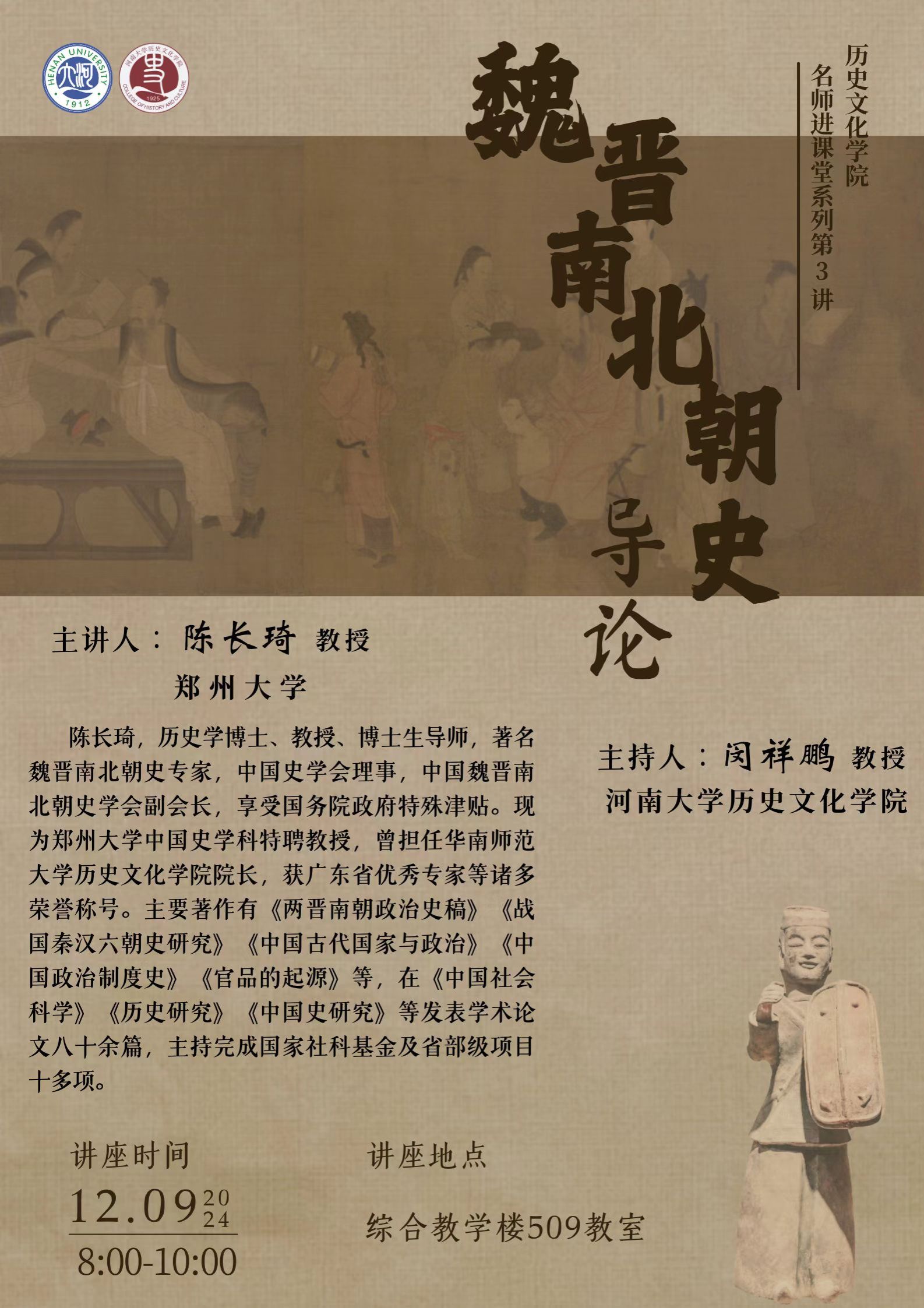 【讲座预告】陈长琦:魏晋南北朝史导论