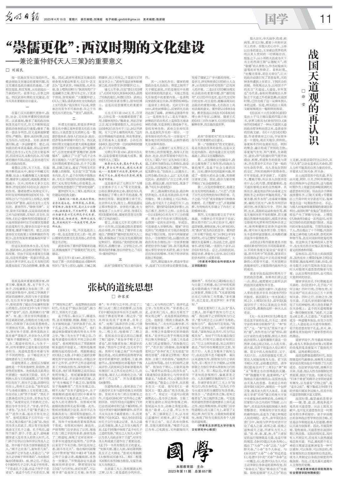 近日,河南大学历史文化学院徐莹在《哲学研究》(2023年第3期)刊发《先德后刑与先刑后赏:两种早期刑德学说的比较》、《光明日报》(2023年4月15日)刊发《战国天道观的再认识》重要文章。
