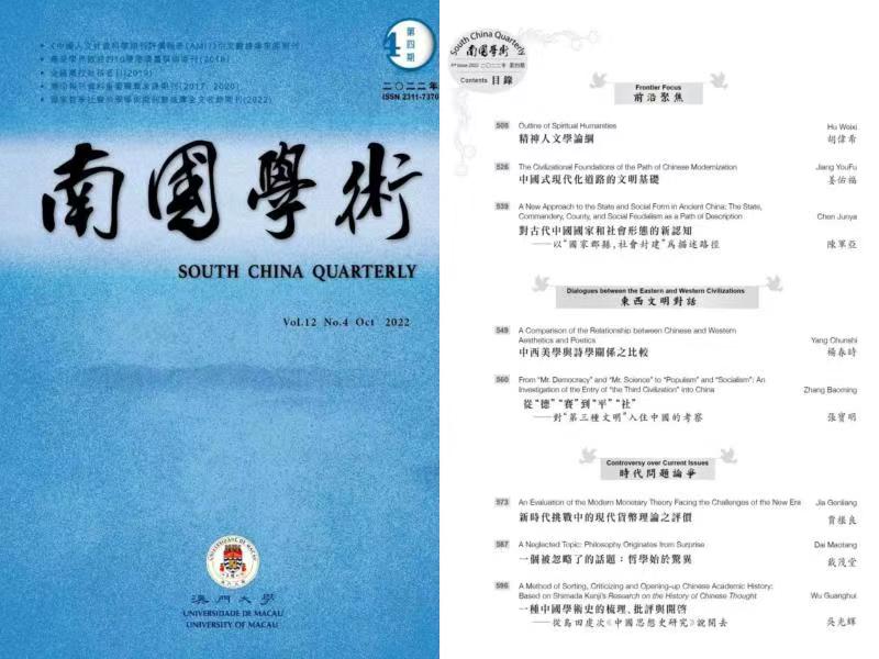 《南国学术》由澳门大学编辑出版,是一本以“大人文、跨学科、超界域”为发稿理念的综合性人文社会科学学术理论期刊,繁体字编排,每三个月推出一期。在文章侧重上,既探讨全球问题、区域问题,也探讨中国问题;在以全球视角看东方和中国的同时,还以东方视角关注世界问题。主要栏目有“前沿聚焦”“东西文明对话”“时代问题论争”“中国历史文化论坛”“思想者沙龙”“独家评论”“域外传真”等。
