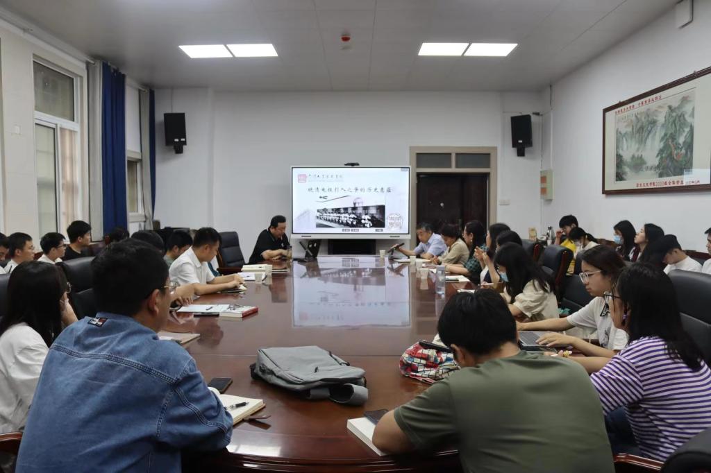 2023年5月24日晚上,南开大学历史学院教授、博士生导师、南开大学中外文明交叉科学研究中心执行主任、中国史学会理事、中国现代史学会副会长、天津历史学会副理事长兼秘书长江沛应邀在历史文化学院三楼会议室做题为《晚清电报引入之争的历史意蕴》的讲座。本场讲座由河南大学历史文化学院教授、博导赵金康主持。