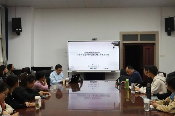 2023年10月18日下午,南开大学夏炎教授受邀在历史文化学院三楼会议室做题为《石刻史料拓展的尝试:白居易祭龙祈雨与唐后期江南地方治理》的讲座,本场讲座由河南大学历史文化学院耿元骊教授主持。