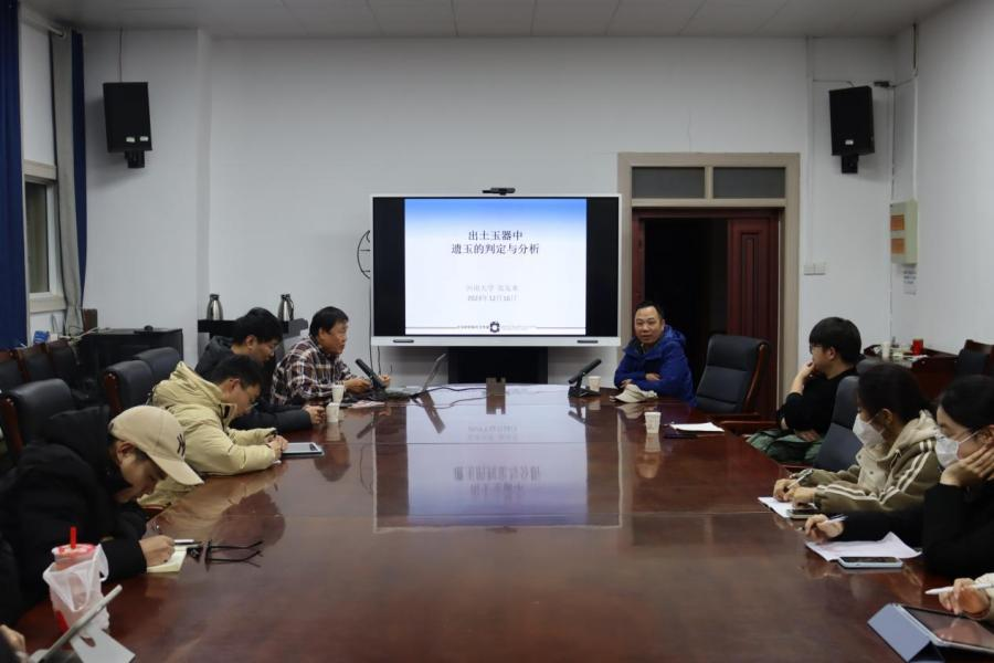 2023年12月16日晚,中国玉文化研究会研究员、河南大学讲座教授张友来受邀在历史文化学院三楼会议室做题为《出土玉器中遗玉的判定与分析》的讲座。本场讲座由河南大学历史文化学院刘中伟博士主持。