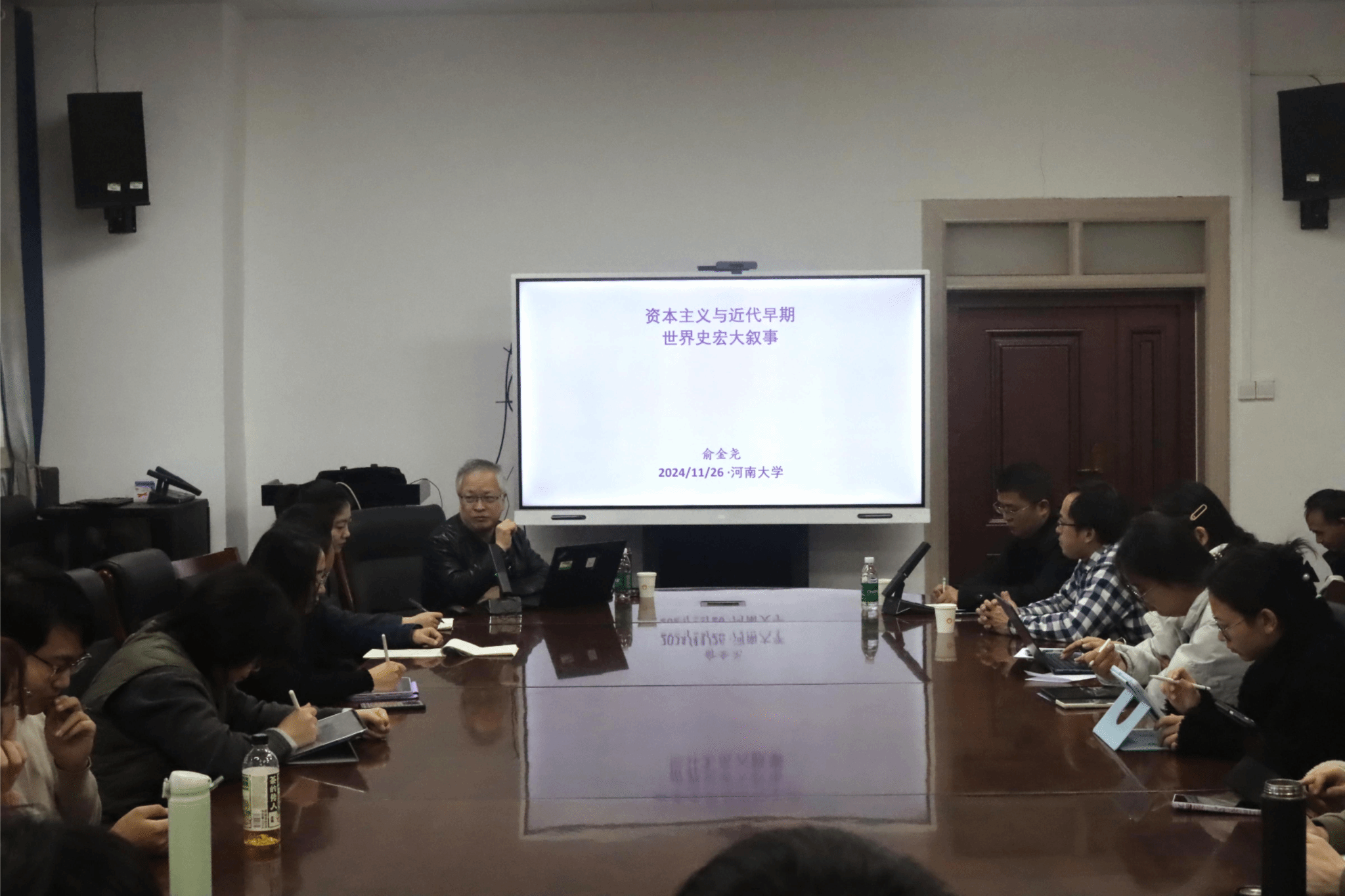 2024年11月26日上午,中国世界近代史专业委员会会长、中国社会科学院大学教授、河南大学讲座教授俞金尧教授,受邀在河南大学历史文化学院三楼报告厅做题为《资本主义与近代早期世界史宏大叙事》的讲座。本场讲座由河南大学历史文化学院胡浩教授主持。