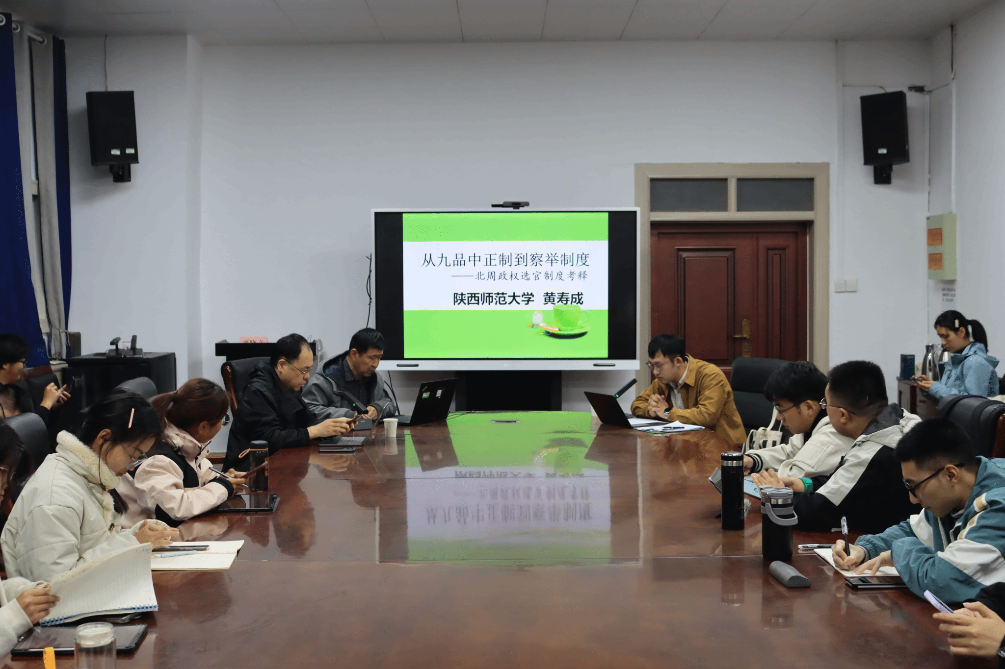 2025年3月27日晚,陕西师范大学历史文化学院教授黄寿成受邀在河南大学历史文化学院三楼报告厅做题为《从九品中正制到察举制度——北周政权选官制度考释》的讲座,本场讲座由河南大学历史文化学院朱旭亮副教授主持。