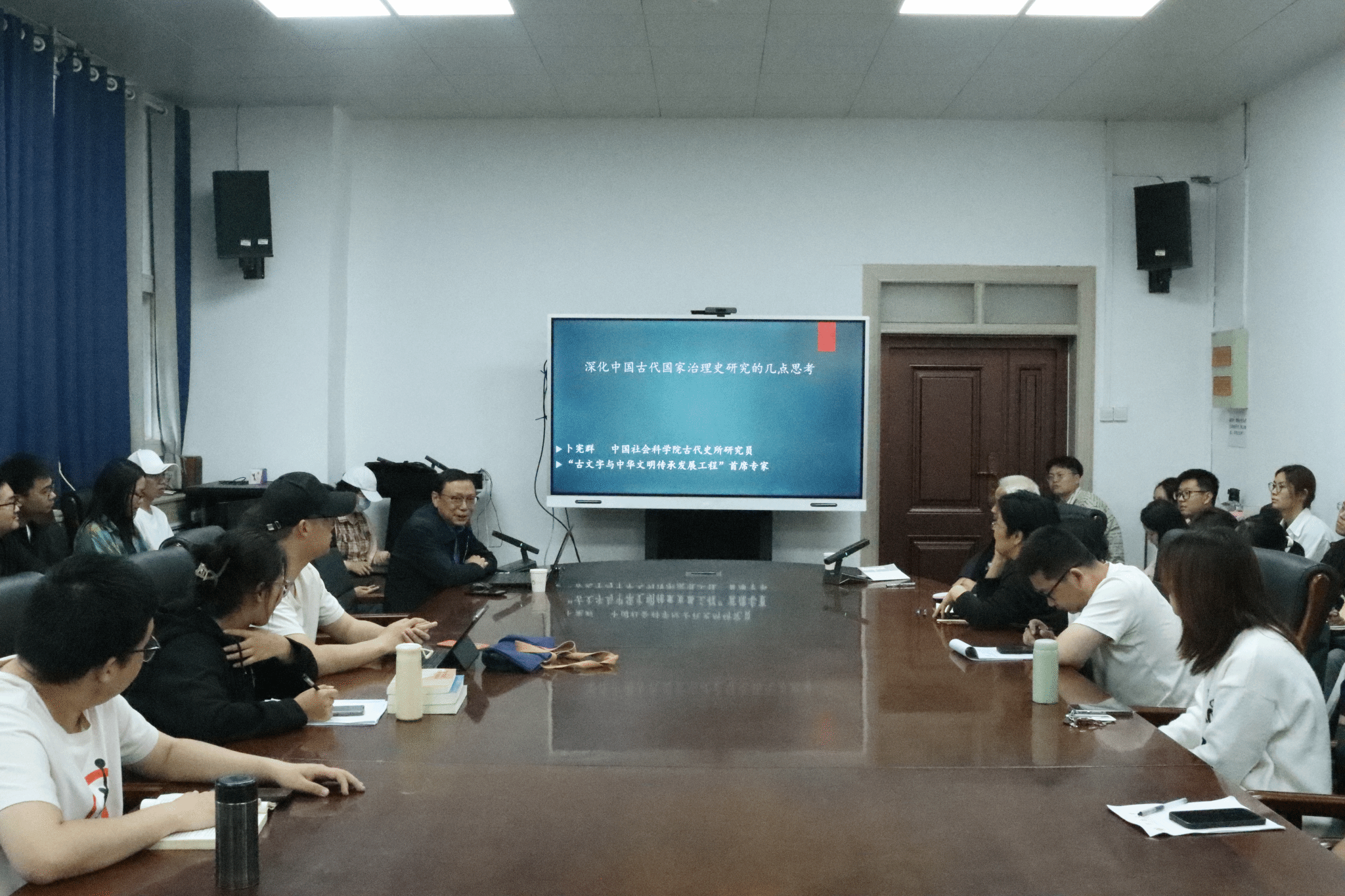 2025年4月24日下午,中国社会科学院学部委员、中国秦汉史研究会会长,中国郭沫若研究会会长,中国社会科学院古代史研究所卜宪群研究员受邀在河南大学历史文化学院三楼报告厅做了题为《深化中国古代国家治理史研究的几点思考》的学术讲座,本场讲座由河南大学历史文化学院李振宏教授主持。