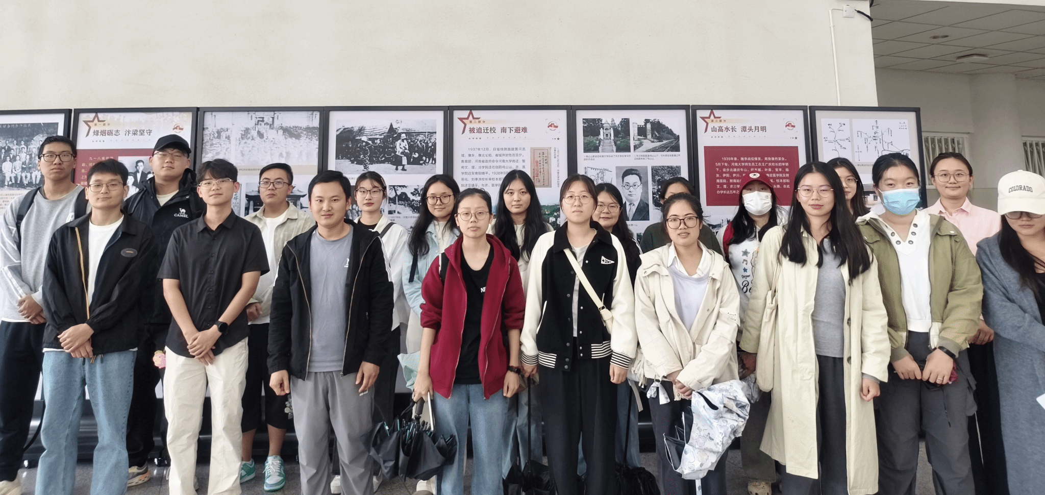 时值抗战胜利80周年,为进一步深化党史学习教育,弘扬爱国主义精神,支部书记姜汉西带领全体学生党员,前往综合教学楼一楼,集体参观了“山河弦歌——抗战中的河南大学”主题图片展。该展览系统梳理并生动再现了河南大学在烽火连天的抗战时期,那段艰苦卓绝而又弦歌不辍的办学历程。一幅幅珍贵的历史图片,一段段详实的文字说明,都深刻触动着党员们的心灵,促使他们珍惜当下,开创未来。