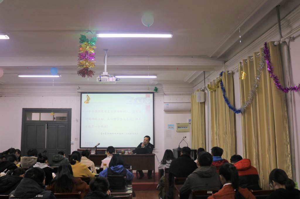 他以理想的概念为切入点,详细介绍理想信念对培养一个人的重要性,他以现如今“群体缺钙”的不良后果举例,指出作为社会主义事业的建设者和接班人,大学生承担的坚持和发展中国特色社会主义、实现中华民族伟大复兴的中国梦的历史使命。他引用习近平总书记的重要讲话,指出青年的价值取向决定了未来的价值取向,培养好这一时期价值观的形成至关重要。通过有理想的人生和没有理想的人生之间的对比,他认为理想信念是人的精神世界的核心,是人精神上的“钙”。如何实现理想?他强调要树立科学的理想并充分认识实现理想道路的长期性、艰巨性与曲折性,学会自我提高、独立自主,学会坚持和主动。作为当代大学生,更要坚定对中国共产党的信任,坚定中国特色社会主义信念,坚定实现中华民族伟大复兴的信心。