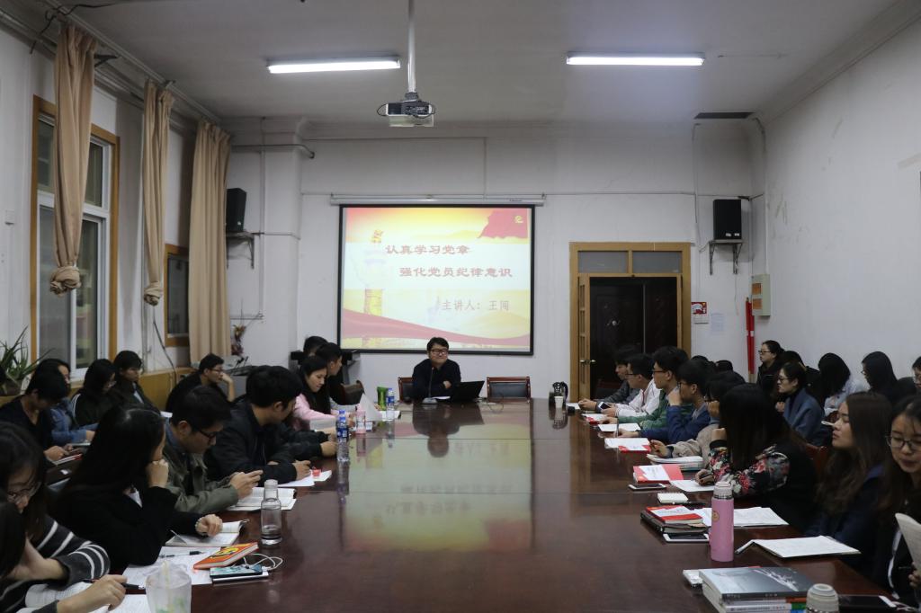 1110日晚,历史文化学院第二期“青马班”暨党课在三楼报告厅进行,历史文化学院党办主任王闯为入党积极分子和学生骨干讲授了以“认真学习党章,强化党员纪律意识”为主题的党课。