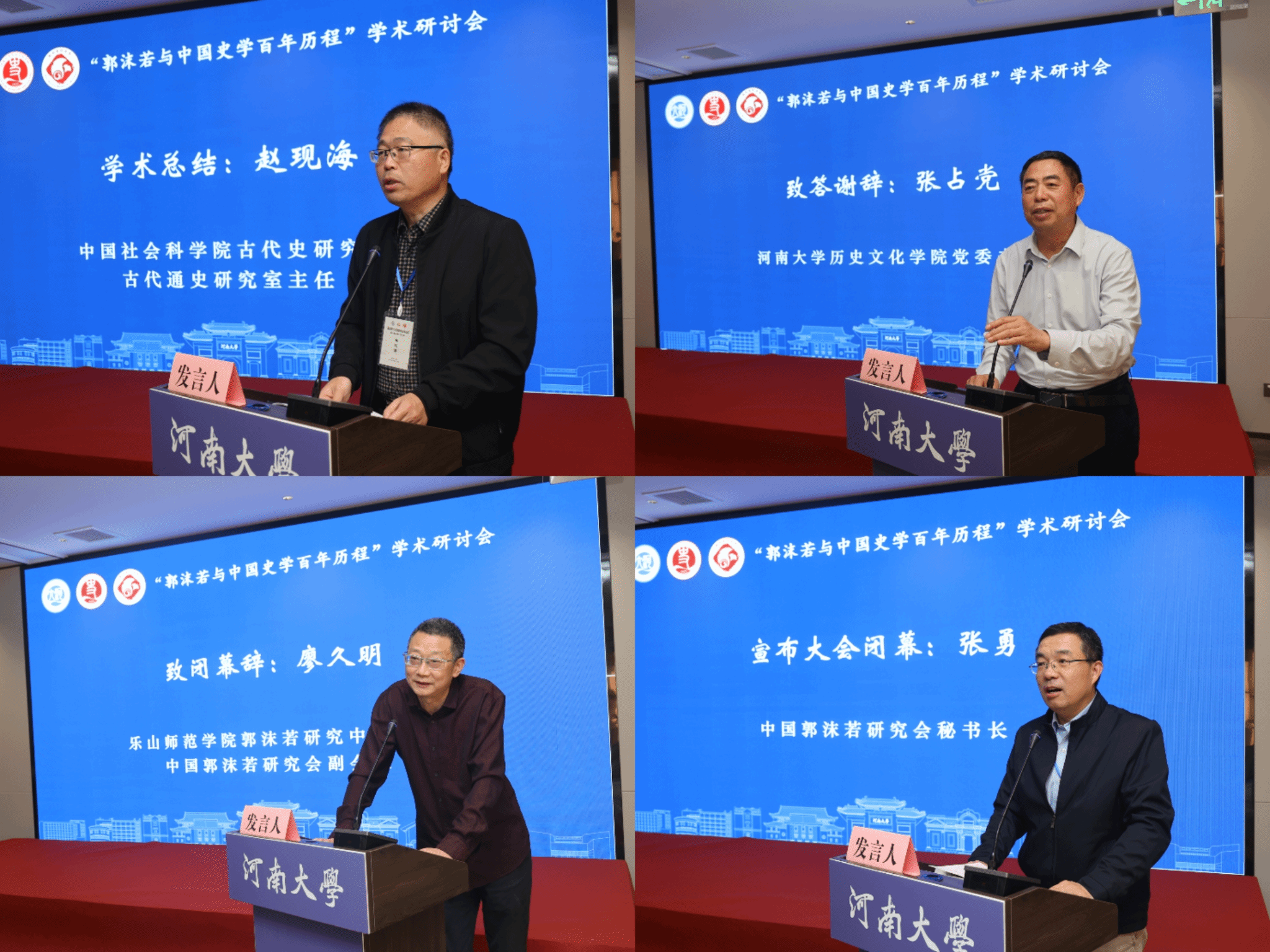 大会开幕式由河南大学历史文化学院副院长胡浩主持。河南大学副校长张礼刚、中国社会科学院学部委员,中国郭沫若研究会会长,中国秦汉史研究会会长卜宪群、河南大学历史文化学院院长祁琛云出席开幕式并致辞。