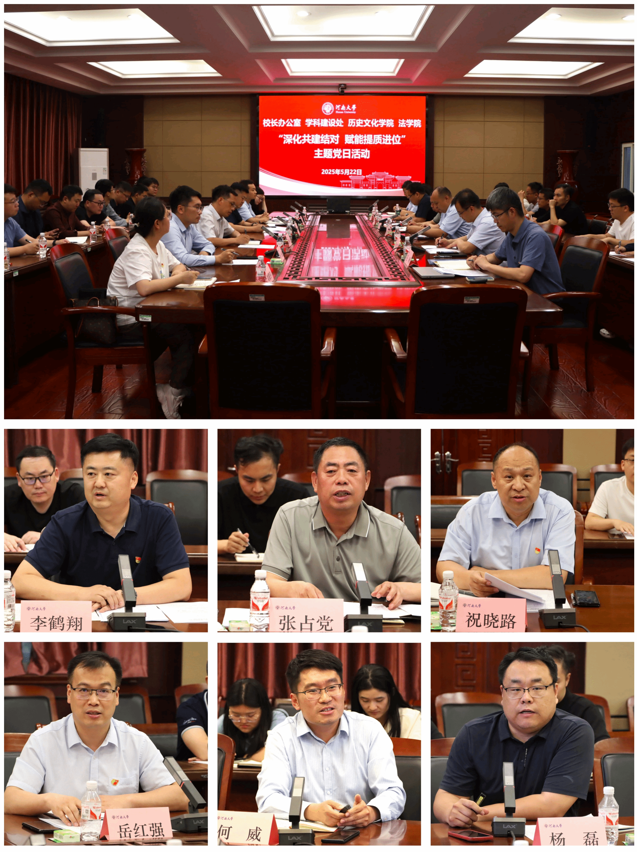5月22日下午,校长办公室、学科建设处、法学院、历史文化学院联合举办“深化共建结对 赋能提质进位”主题党日活动,赴开封市廉政教育基地开展实地教学,并在明伦校区法学院第一会议室召开理论学习与专题研讨会议,深入领会习近平总书记考察河南时重要讲话精神,学习贯彻中央八项规定精神,传达学习部、省有关领导到校调研指示精神。来自四个部门的50余名党员代表参加活动。