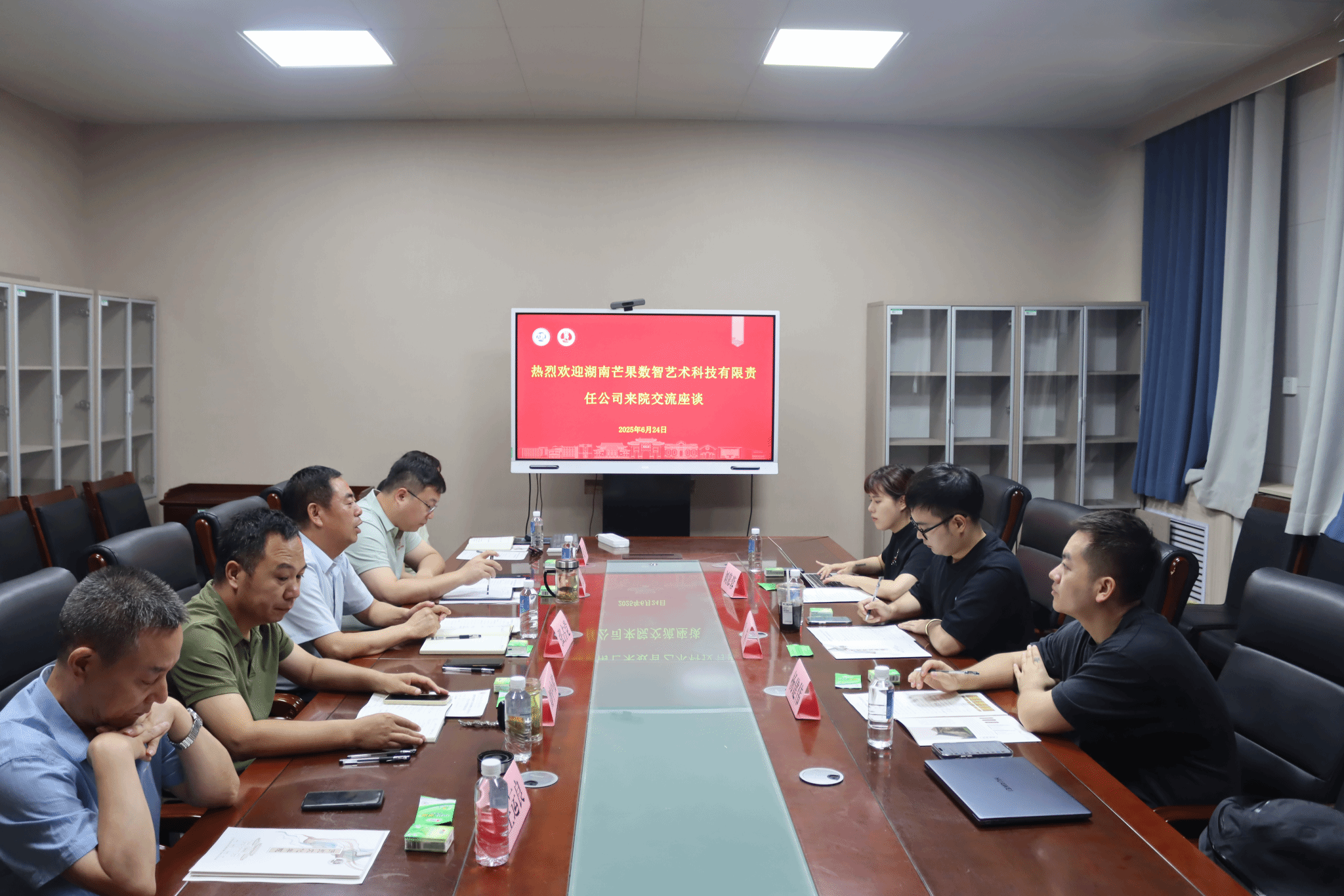 6月24日上午,河南大学历史文化学院与湖南芒果数智艺术科技有限公司在历史文化学院二楼考古文博系举办交流座谈会。湖南芒果数智艺术科技有限责任公司研创中心副总经理雷萍、总监杨建伟、项目经理刘慕蓉,河南大学历史文化学院党委书记张占党、副书记周文凯,考古文博系主任刘中伟、党支部书记张玲、副主任李雯雯,文物数字化实验室主任王运良参加会议,会议由周文凯主持。