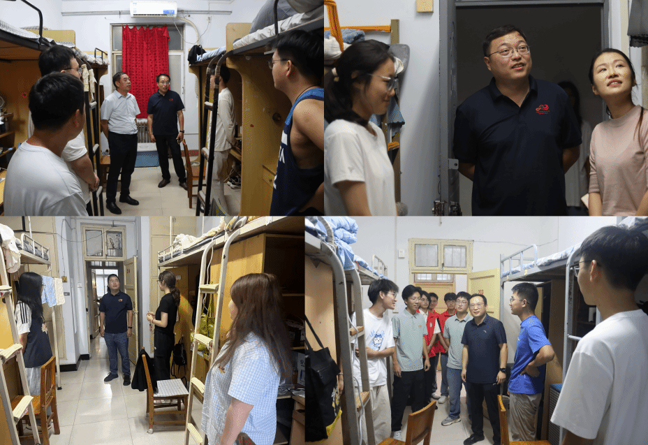 张占党、祁琛云、姜汉西一行前往明伦校区学一、学三学生公寓,细致检查设施状况,关切询问新生对校园环境的适应程度,鼓励博硕新生积极投身学术探索,提前规划学业路径,为其学术发展提供指导;周文凯、林芷羽走进仁和学生公寓三号楼,亲切了解新生的家乡背景、饮食及气候适应情况,贴心提醒军训期间注意身体状况与防晒,并特别叮嘱上下铺使用的安全事项;胡浩、贾茜贝赴明伦校区学十学生公寓,关注新生生活适应问题,围绕学业规划提出建议,鼓励他们积极参与学术研讨与实践;闵祥鹏、郑振亚在明伦校区学九学生公寓与新生交流入学体验,结合学院培养要求指导学业规划,传递学业与生活方面的双重关怀;陈升远、田管宁深入明伦校区学四学生公寓,细致察看宿舍照明等条件,了解省内、外新生的适应状况,并鼓励学生积极投身志愿服务工作。