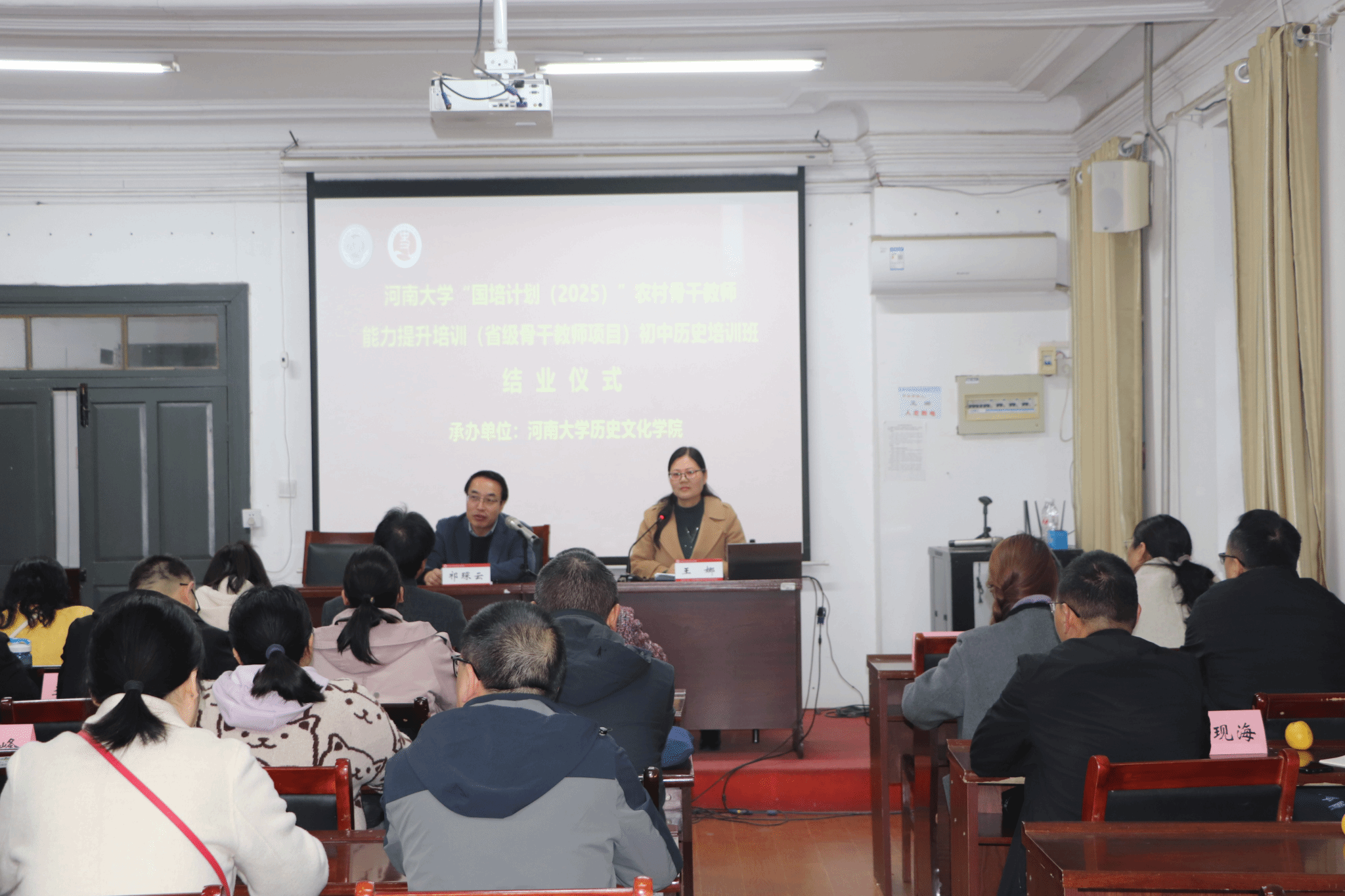 国培赋能启新思,教坛蓄力再出发。10月22日上午,“国培计划(2025)”农村骨干教师能力提升培训(省级骨干教师项目)初中历史培训班结业仪式,在河南大学历史文化学院顺利举行。历史文化学院院长祁琛云出席仪式并致辞,班级负责人王娜主持仪式。