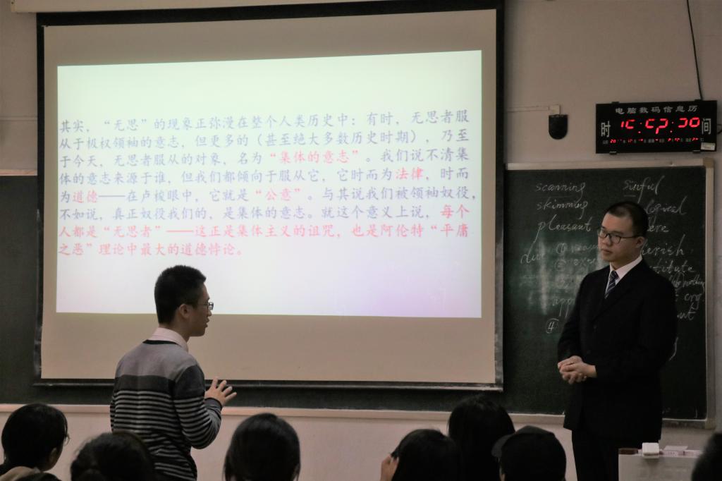 团委学生会主办的博雅讲堂活动在明伦校区综合楼218教室展开,本次博雅讲堂邀请了2014级世界史专业的周毅担任主讲人,他为同学们带来了一场题为《阿伦特‘平庸之恶’理论的道德悖论》的报告。日本五级片