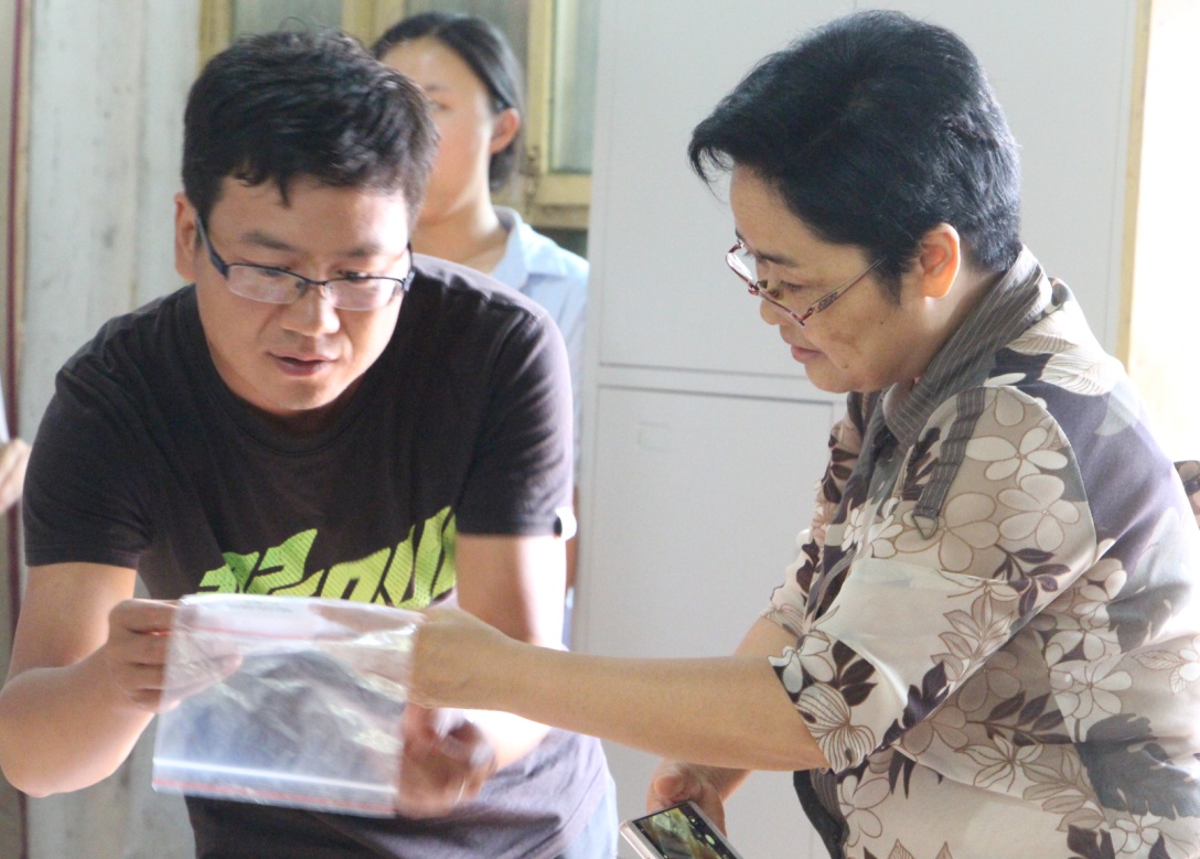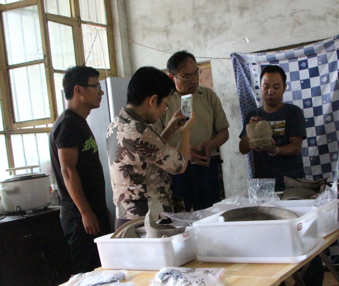 上午10︰00,孙校长一行抵达孙村考古发掘驻地。刚一下车,孙校长即被发掘出土清洗后晾晒在院落门前的各种文化遗物吸引,他详细询问各种遗物的年代、文化属性、制造工艺等相关问题。拿起一个个陶片,孙校长饶有兴致的进行了拼对。他告诉同学们,考古工作的目的,就是要通过破碎的文化遗物努力复原真实的历史,要求大家要对文物有敬畏之心、加倍爱护。
