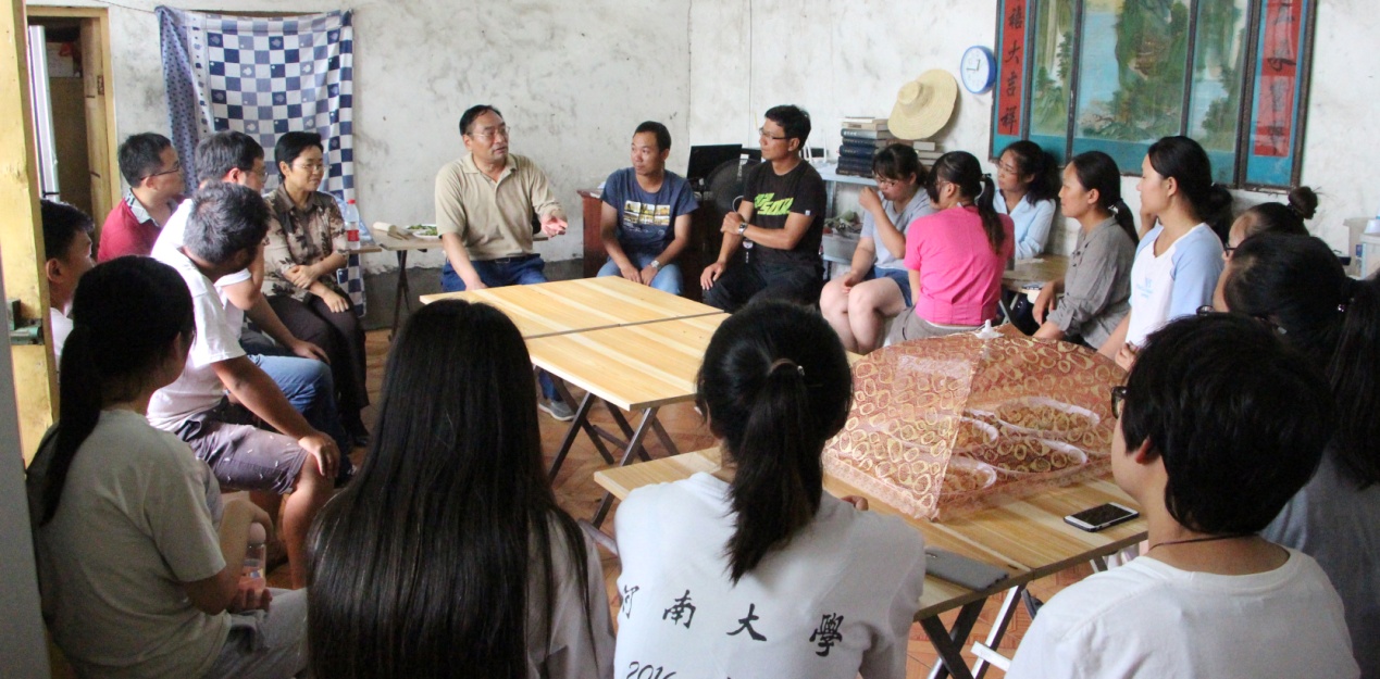 在驻地的小院落,孙校长深入了解同学们的工作、学习和生活情况。院落内,发掘物资摆放有序、文物架柜干净整洁,虽临近中午,参与实习的2014级博物馆学专业同学们依然汗流浃背的工作。在整理室内,孙校长仔细观摩发掘出土的大量陶器、石器、骨器、玉器等珍贵文物。他赞赏同学们,能够亲手挖出来这么多精美文物是特别幸福的事。