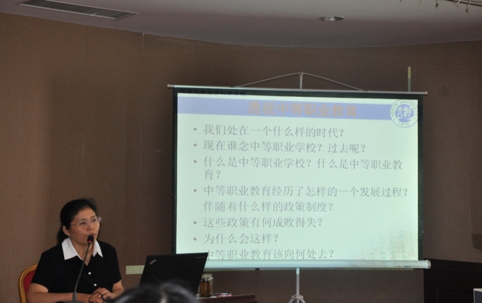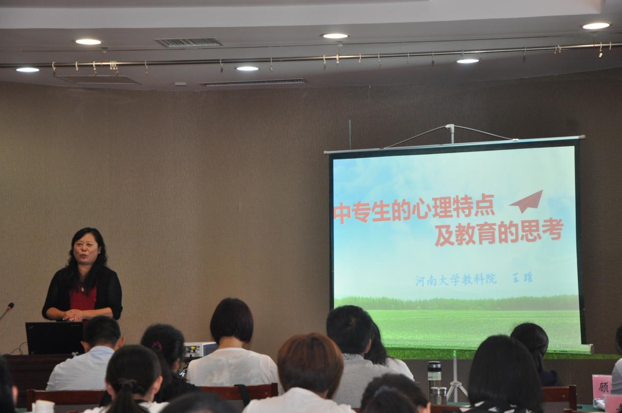 河南省工业科技学校校长岳小战老师作首场专题讲座,他围绕河南中等职业教育师资队伍现状和加强我省中职学校师资队伍建设的对策展开详细分解,认为只有全方位地加强师资队伍建设,河南职业教育的内涵式发展才能实现,才能为全省经济社会的繁荣发展做出更大的贡献;旅责险统保示范项目调解处理中心河南分中心芮卫生老师结合我省2016及2017年上半年旅游安全形势,全面解读了“安全是旅游的生命线”这一主题,突出安全在旅游重中之重的地位,强调“无危则安,无损则全”的主旨思想;河南大学教育科学学院教授王瑶老师就青少年的心理特点、中专生常见的心理问题及辅导策略两个视角,强调青少年教育工作的必要性,她期待在家庭、学校和社会的相互协作下,每一位青少年都能顺利度过青春期,健康快乐的生活。河南大学教育科学学院教授王星霞老师以《透视中职教育》为题,借助中等职业教育发展政策变化列表,串讲了改革开放以来中职教育的发展历程,并对国家中长期职业教育的核心——培养什么人,怎么培养人等重大问题展开了讨论。