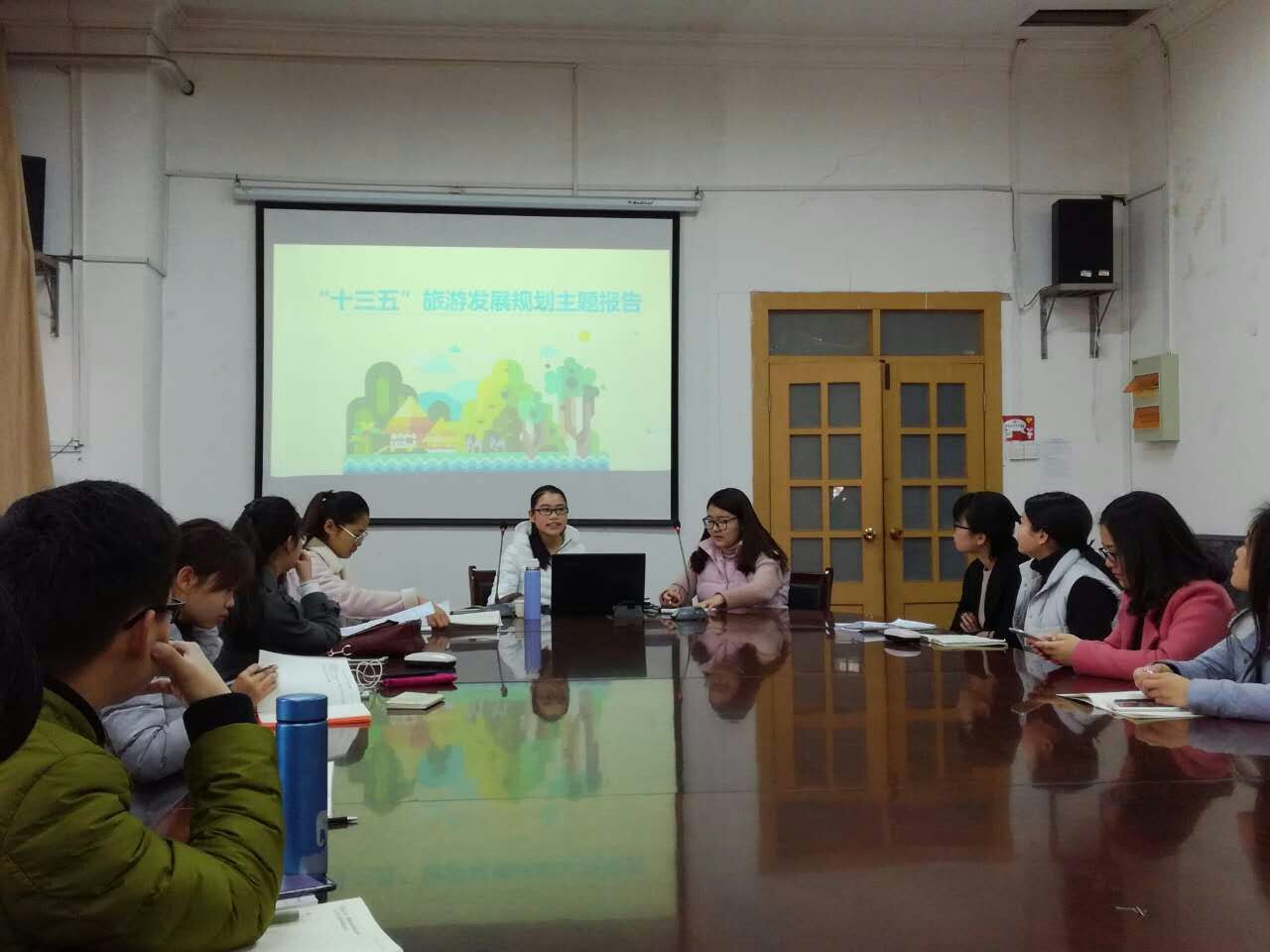 2月25日上午,在历史文化学院三楼会议室成功举办了以“十三五”旅游发展规划为主题的第14期沙龙活动。王忠丽和张野老师出席了本次活动。15级旅游管理专业沈联衢同学担任本期的主持人,近30名旅游管理的学生参与了本次活动。