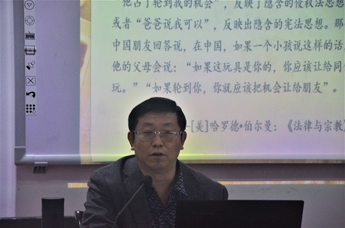 12月12日晚上,天津师范大学历史文化学院赵文君教授应邀在学院二楼会议室为学院师生作了题为《西方的私人财产观念与社会》的专题讲座。讲座由邱胜利副教授主持,现场气氛热烈,座无虚席。