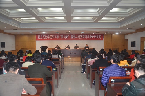 11月17日下午,以“弘扬长征精神,共筑繁荣梦想”为主题,历史文化学院2016年青年马克思主义者培训班暨第二期党课培训班在明伦校区第四会议室举行开班仪式。学校团委副书记沙莎、学院党委书记许俊峰、副书记杨光辉出席会议。开班仪式由学院团委书记谢宇飞主持。