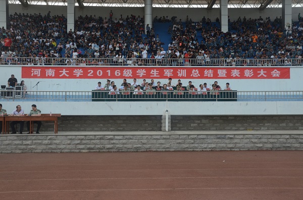 挥汗半月战果斐然,青春无悔谁与争锋。9月18日下午,河南大学2016级新生军训总结暨表彰大会在金明校区志义体育场隆重举行。河南大学校长娄源功、校党委副书记王凌,副校长刘志军、孙君健,解放军信息工程大学训练部部长宋明武少将、开封市军分区参谋长崔瑜大校等部队首长及军训领导组成员和各学院有关负责人出席大会。大会由河南大学党政办公室主任孙功奇主持。