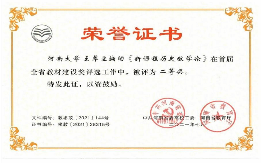 近期,历史文化学院教师王翠主编的《新课程历史教学论》在首届全省教材建设奖评选工作中被评为“二等奖”。