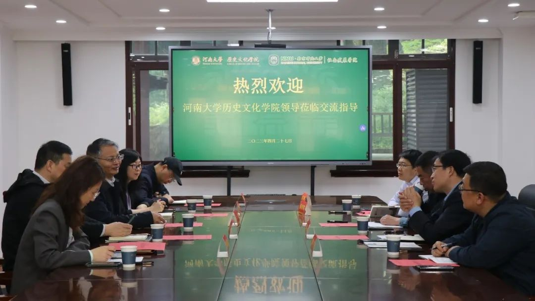 2023年4月27日上午,河南大学历史文化学院党委书记张占党、党委副书记、院长祁琛云、《史学月刊》主编苗书梅、副院长闵祥鹏、行政办公室主任谢宇飞一行赴南京师范大学历史学系进行交流座谈。南京师范大学社会发展学院院长王剑、党委副书记沈晓颖、副院长杨光飞、历史学系主任严海建、历史学系副主任张文晶参加了此次座谈会。双方就历史师范专业认证与一流专业建设、历史学科建设与科研工作开展情况、学院事业发展与人才队伍建设等议题进行了深入交流。