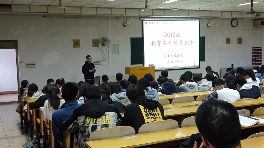 百年大计,教育为本;教育大计,教师为本。历史文化学院高度重视历史学专业的建设和发展,注重学思结合,努力推动教师教育课程学习和实践育人工作取得新成效。本次教育实习从开学初筹备至学生回讲、考核,累积时间18周,参与毕业生有130人、校内指导教师13人,分别到河南大学附属中学、金明中学、开封市第七中学等7所中学(部)进行实习。