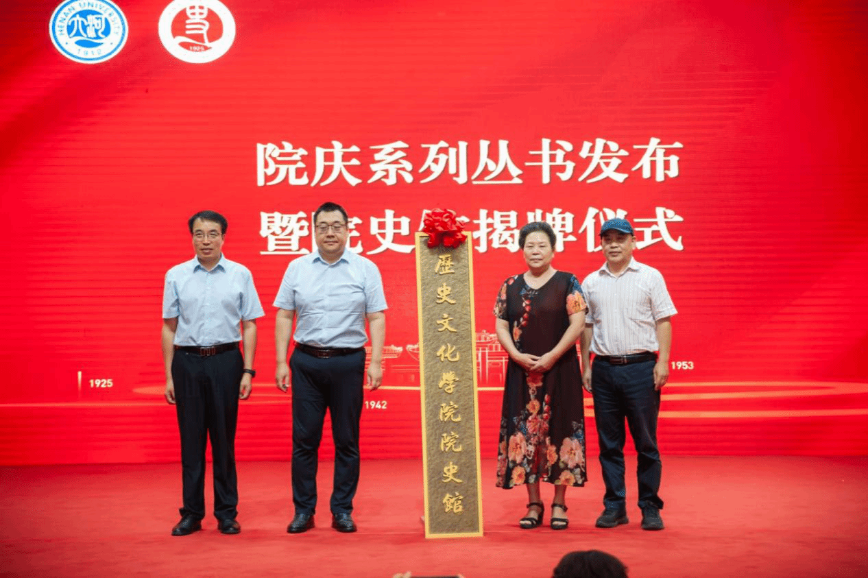 会前,参会人员共同观看了院情片《史诗》和院庆纪录片《百年荣光》,会上杨萌芽、河南大学出版社党委书记杨光辉、社长谢清溪和张占党为院史系列丛书揭幕。乔梁、康艾青、祁琛云、院史馆主创陈宏斌,共同为历史文化学院院史馆揭牌。