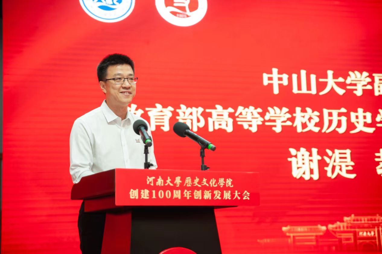 盛夏的古都开封,古韵生辉;百年的河大史学,薪火长燃。今天,我们怀着崇敬且欣喜的心情相聚于此,共同庆祝河南大学历史文化学院成立 100 周年。作为兄弟院校代表,我谨代表中山大学,并以一名史学教育者、研究者的身份,向河南大学历史学院致以最热烈的祝贺!在这个特殊的时刻,我们共同见证河南大学历史文化学院百年华诞,这不仅是河南大学的盛典,也是中国历史学界的盛事。