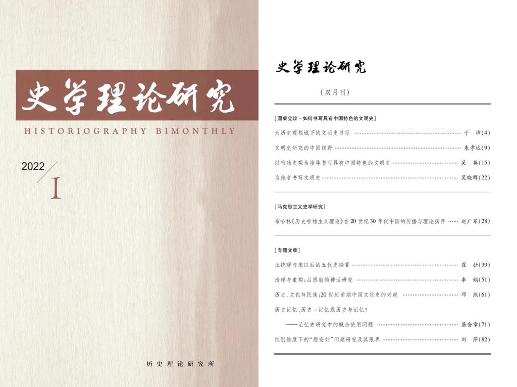近期,历史文化学院教师赵广军、宁腾飞分别在《史学理论研究》2022年第1期、第2期发表《布哈林<历史唯物主义理论>在20世纪30年代中国的传播与理论扬弃》和《刘泽华史学方法论的构建》的专题论文。