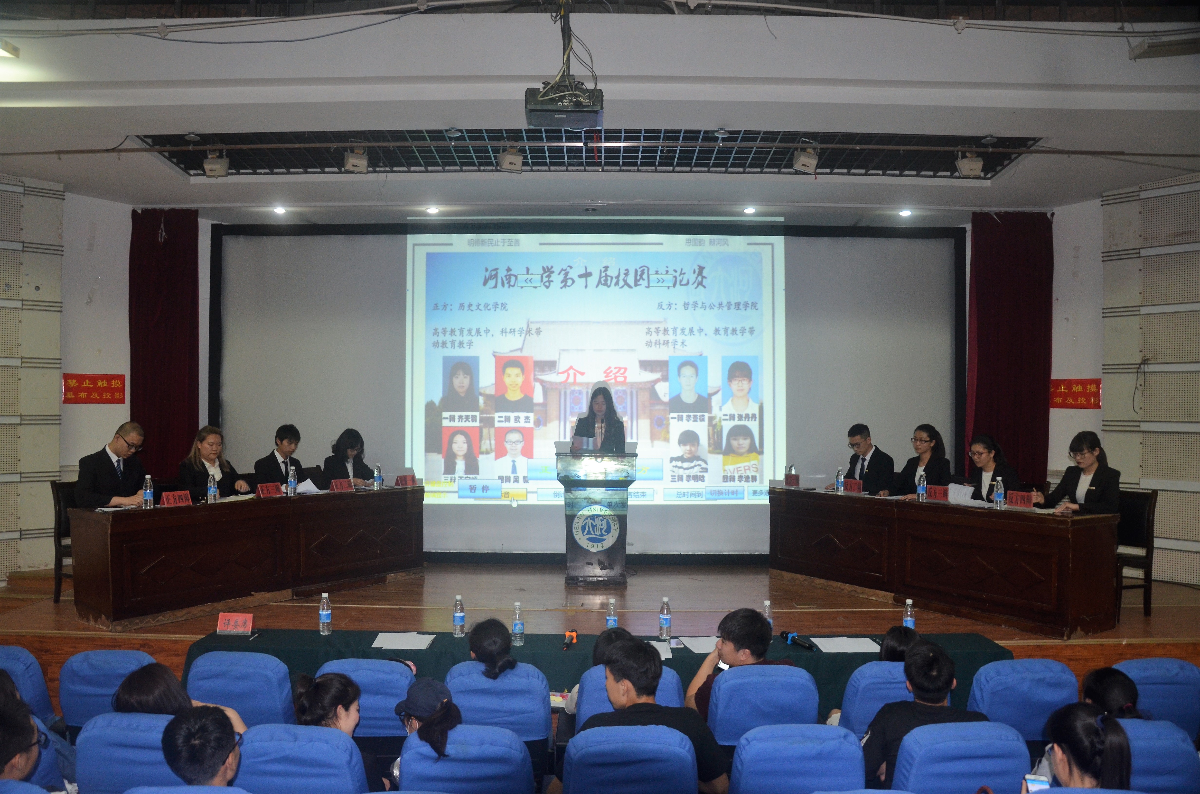 一方战场,各持两仪阴阳;三绝韦编,楚歌四面攻防。5月17日下午,以“思国韵·辩河风”为主题的河南大学第十届校园辩论赛总决赛在明伦校区科技馆二楼举行,校团委副书记沙莎、李平等领导老师出席总决赛并担任评委。