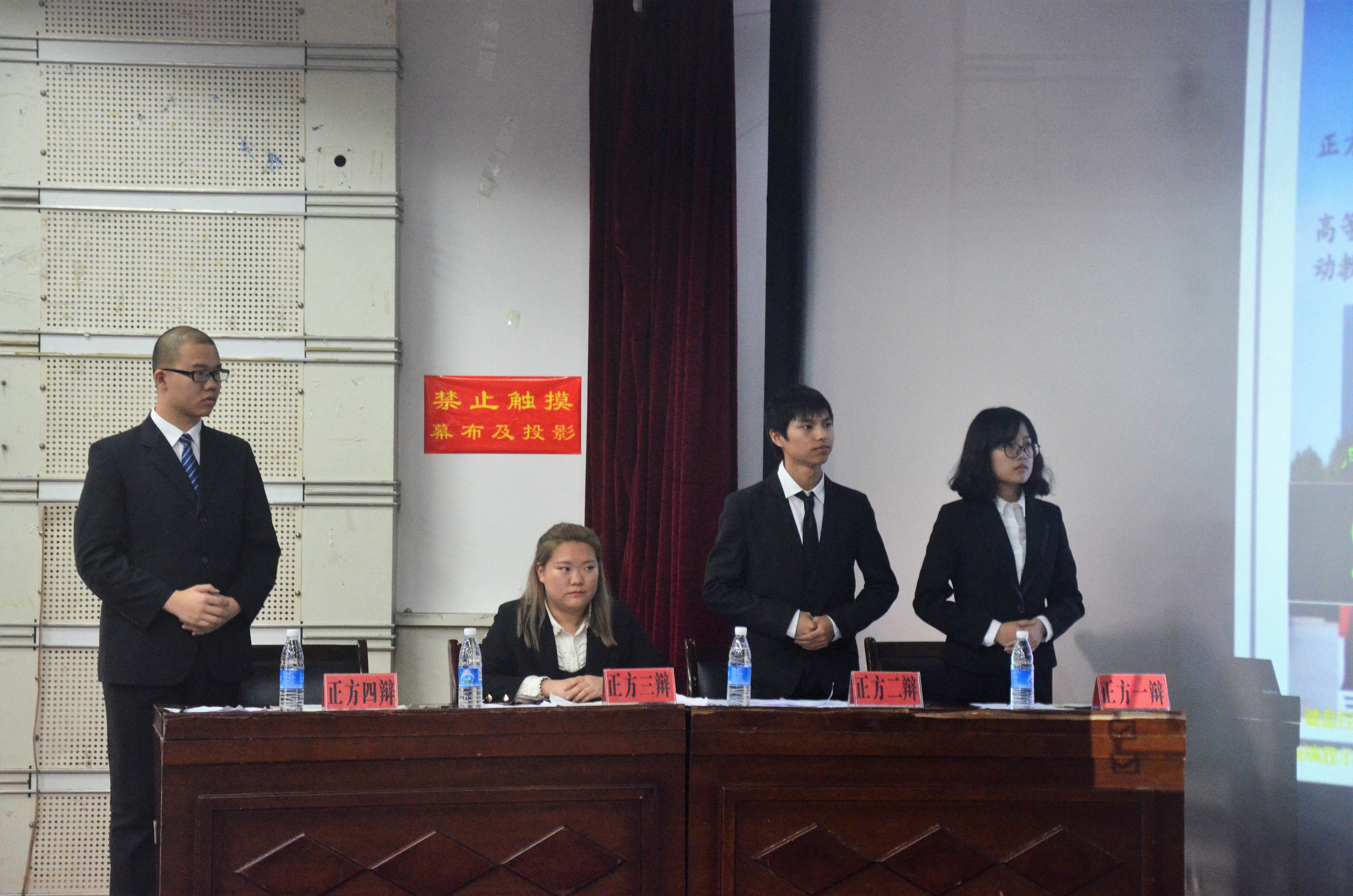 比赛开始后,我院辩论队一辩齐天羽同学以钱学森先生“为什么我们的学校培养不出杰出人才”这一发问为切入点,在对科研学术和教育教学定义并提出自己的判准后,从事实层面和价值层面分别准确、详细地论证了我方的观点。在指定攻辩环节,双方二辩对带动和促进的定义以及比较问题展开了激烈的讨论。盘问小结环节,我方三辩王宇頔同学准确指出了对方的问题,逻辑清晰,用大量的反问和实例证明我方的观点。自由辩论环节,双方对争论点展开了更为极为激烈的争论,你来我往,各抒己见,将现场气氛推向了高潮。总结陈词环节,我方四辩周毅同学明确指出了对方概念用词不当、审题有误的问题,提出好的教育需要什么条件、内容,老师教得好,同学听得好,都需要教育科研学术,所有我们教育的内容都是新的研究出来的,并回归到我方一辩的立论,他超强的总结能力以及随机应变能力令全场人折服。