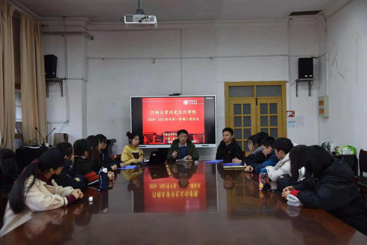 2020-2021学年第一学期新团员入团仪式在学院三楼会议室举行,学院团委副书记郑振亚、部分团员代表、全体新团员参加入团仪式。