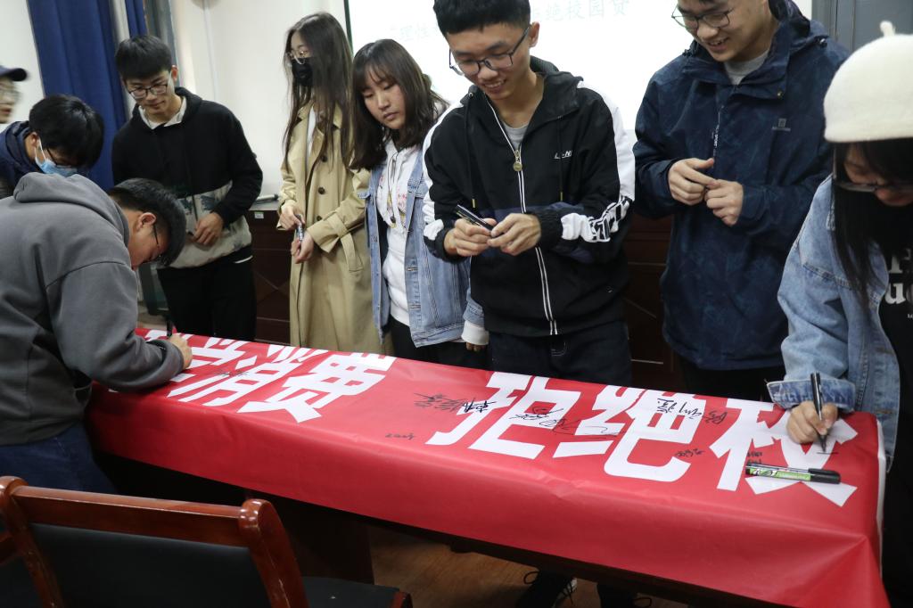 于113教室举办了题为“远离校园网贷,共建和谐校园”的专题宣讲活动。会上,通过播放视频、分享真实案例等多种形式,向同学们介绍什么是校园贷、校园贷的危害及相关防范措施,同学们积极分享了学习感受和自身经历。活动的最后,同学们积极在写有“理性科学消费,拒绝校园贷款”的条幅上签字。