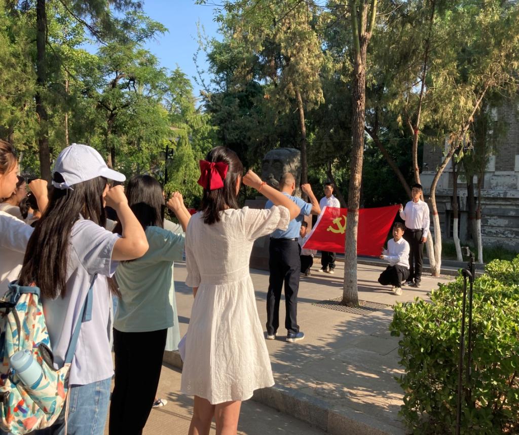 在明伦校区六号楼李大钊先生塑像前举行新党员入党宣誓暨党员重温誓词仪式。学院教师党员代表、46名新党员参加本次活动,仪式由日本五级片