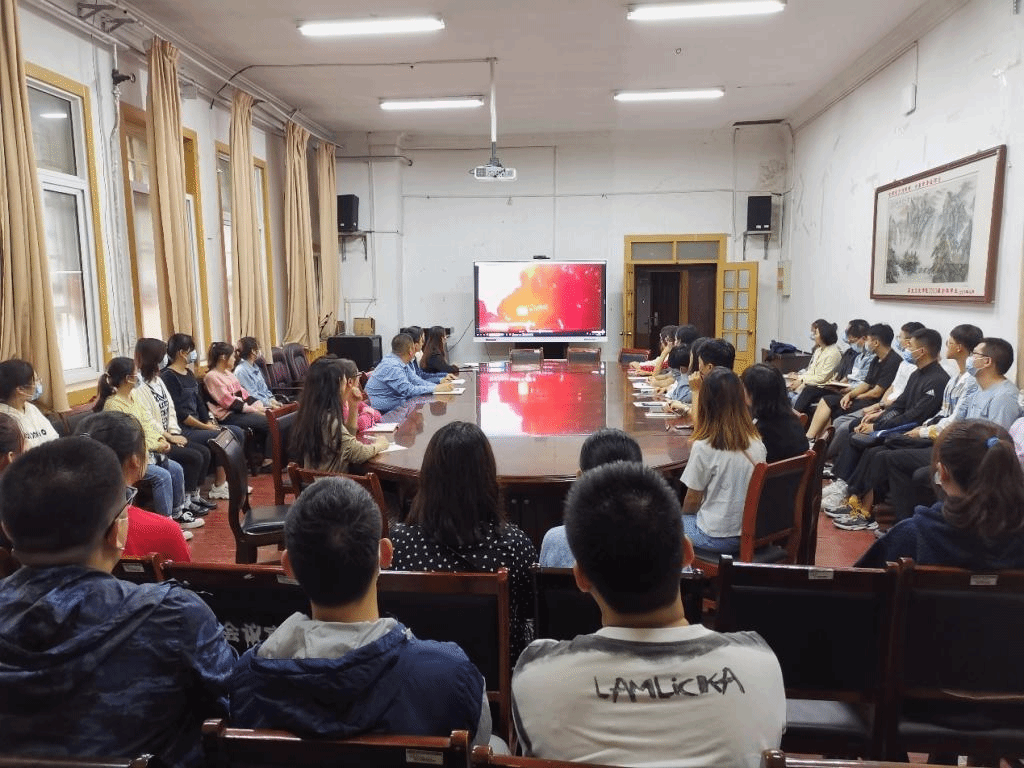 组织师生在三楼会议室观看思政专题课。学院党委书记张占党、各年级辅导员及部分2021级研究生参加。