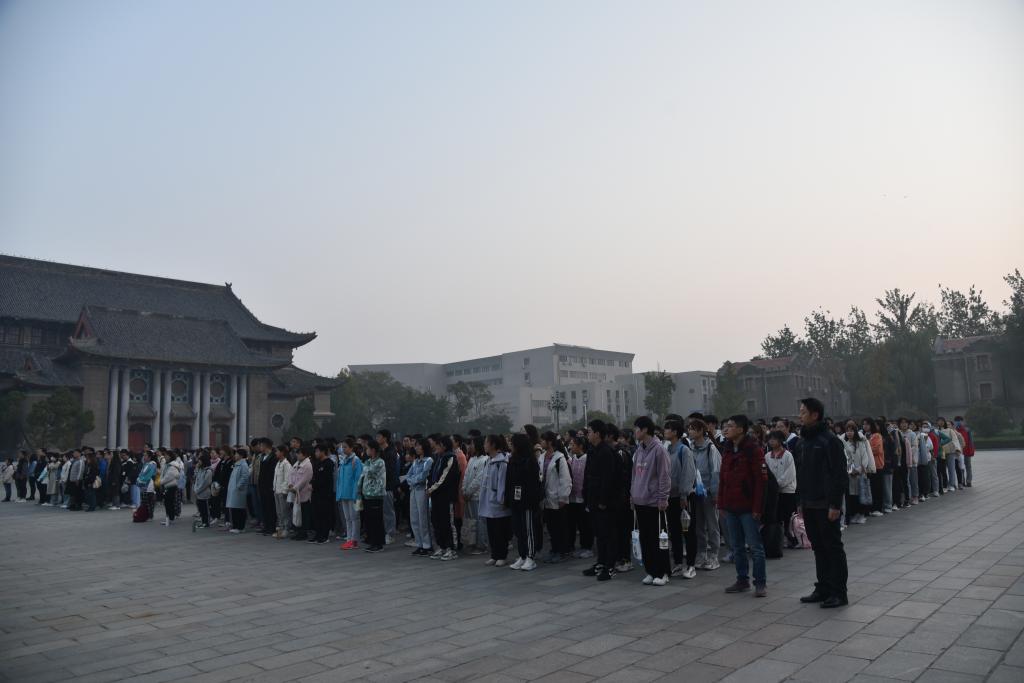 10月25日,迎着晨曦,历史文化学院全体本科生在大礼堂广场面向升旗台集合完毕,接受升国旗主题教育。升旗仪式庄严而隆重,英姿飒爽的国旗护卫队迈着整齐有力的步伐,于师生队列后方入场。伴随着雄壮的国歌声,学院全体本科生肃立,向缓缓升起的五星红旗行注目礼,向伟大的祖国致以最崇高的敬意。