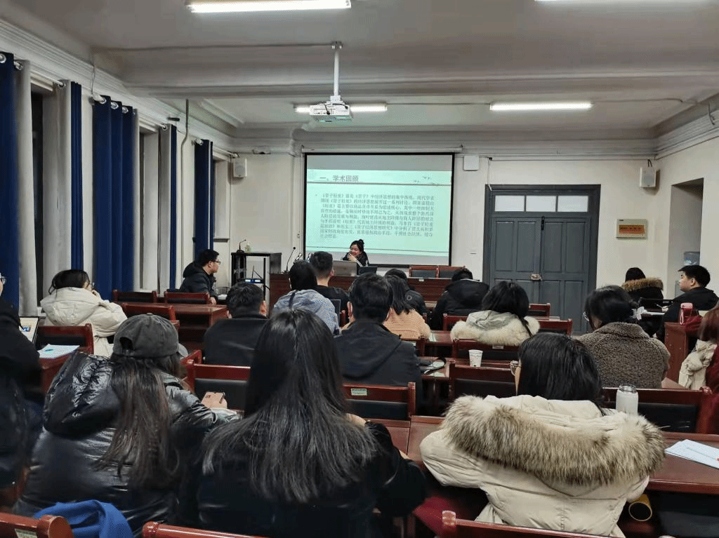读书会由2020级张思雨同学以《秦墨对墨家的辩证继承》为主题的汇报拉开序幕。张思雨就墨家三派、秦墨与墨、秦墨与墨家思想三部分展开分析,并总结为“非攻”“尚同”都是顺应大时代发展,对墨家原本思想进行了辩证继承。接着,2020级高怡馨同学以《<管子>轻重之术下的利益调配》为题展开汇报。她先进行了学术回顾,并通过轻重之术、轻重理论的内容两方面进行论述,最终总结管子的轻重之术是从市场取利治国的角度出发的。随后,2019级刘雅楠同学汇报小组选题《儒法合流下汉代文吏地位的转变》,她从文吏释义、汉代文吏地位的转变和总结思考三个方面进行详细的解读。最后,2019级周天毅同学以《儒生还是文吏——士大夫政治模式下“官”与“吏”的整合与分化》为题作读书报告。他首先提出上层官僚群体的整合——儒生文吏化的观点,接着他论述官僚群体的分化——上层士大夫群体和基层官吏(胥吏)的部分,指出基层官吏被分化的两点直接原因。最后在更深层次的思考中提出官吏分途的概念。