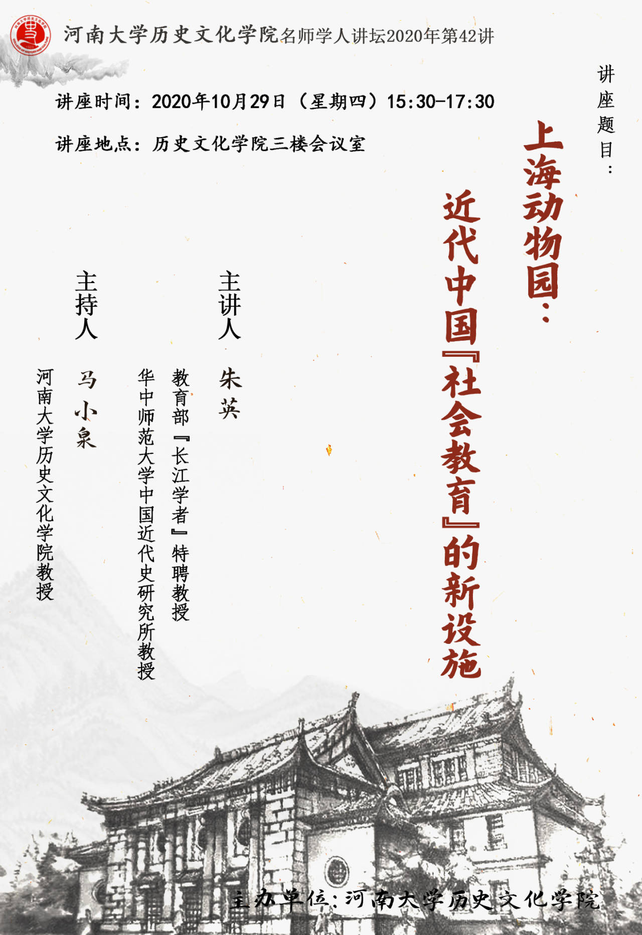 【讲座通知】朱英:上海动物园:近代中国社会教育的新设施