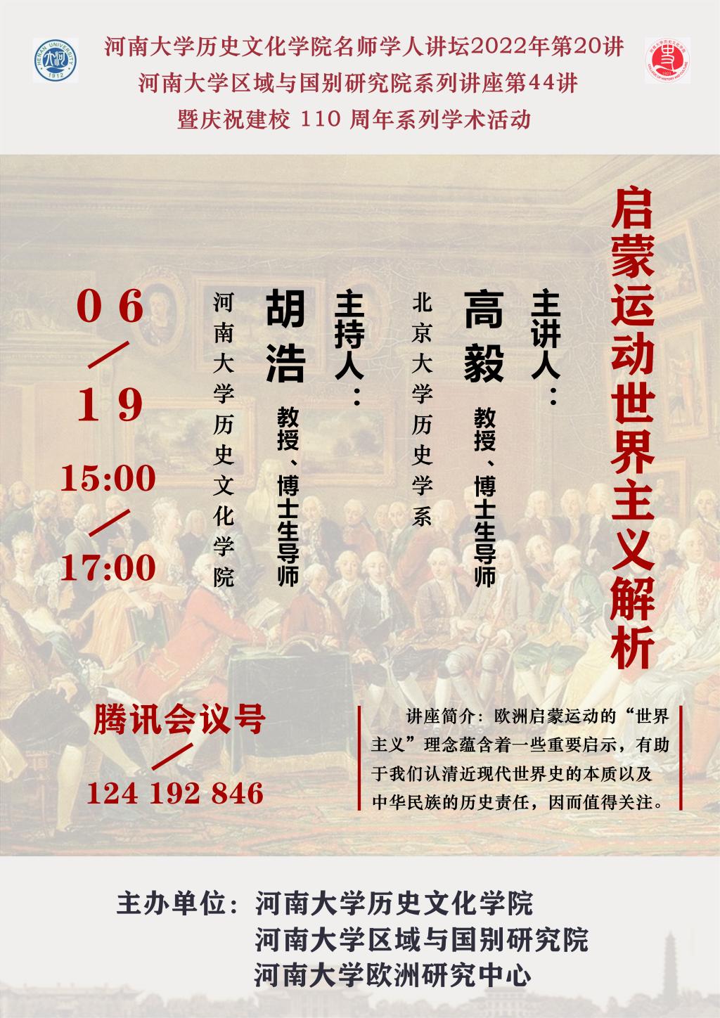 【讲座通知】高毅:启蒙运动世界主义解析