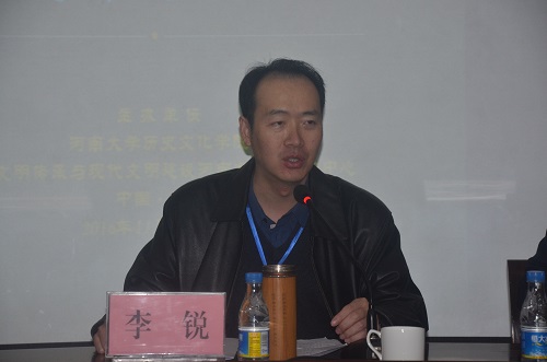 北京师范大学历史学院李锐教授在致辞时表示:感谢河南大学历史文化学院对举办此次学术研讨会做出的努力和贡献。他指出:三代思想文化均在中州,其中一大研究重镇即在河南大学,相信与会的各位专家学者能提出新的观点,这些新观点也定会引起百家争鸣,推动新诸子学及中国古代思想史研究的发展。最后李锐教授预祝研讨会取得圆满成功。