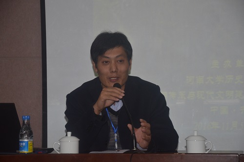 历史文化学院副院长张礼刚教授致欢迎辞,他代表历史文化学院对各位专家学者的到来表示欢迎,感谢各位专家学者对河南大学及历史文化学院的关心与支持。他向各位专家学者简单介绍了河南大学及历史文化学院的基本概况及发展现状,他表示,本次学术研讨会将进一步促进新诸子学与中国古代思想史的研究,使本学术领域迈入新的研究高度并预祝此次研讨会圆满成功,取得丰硕的成果。